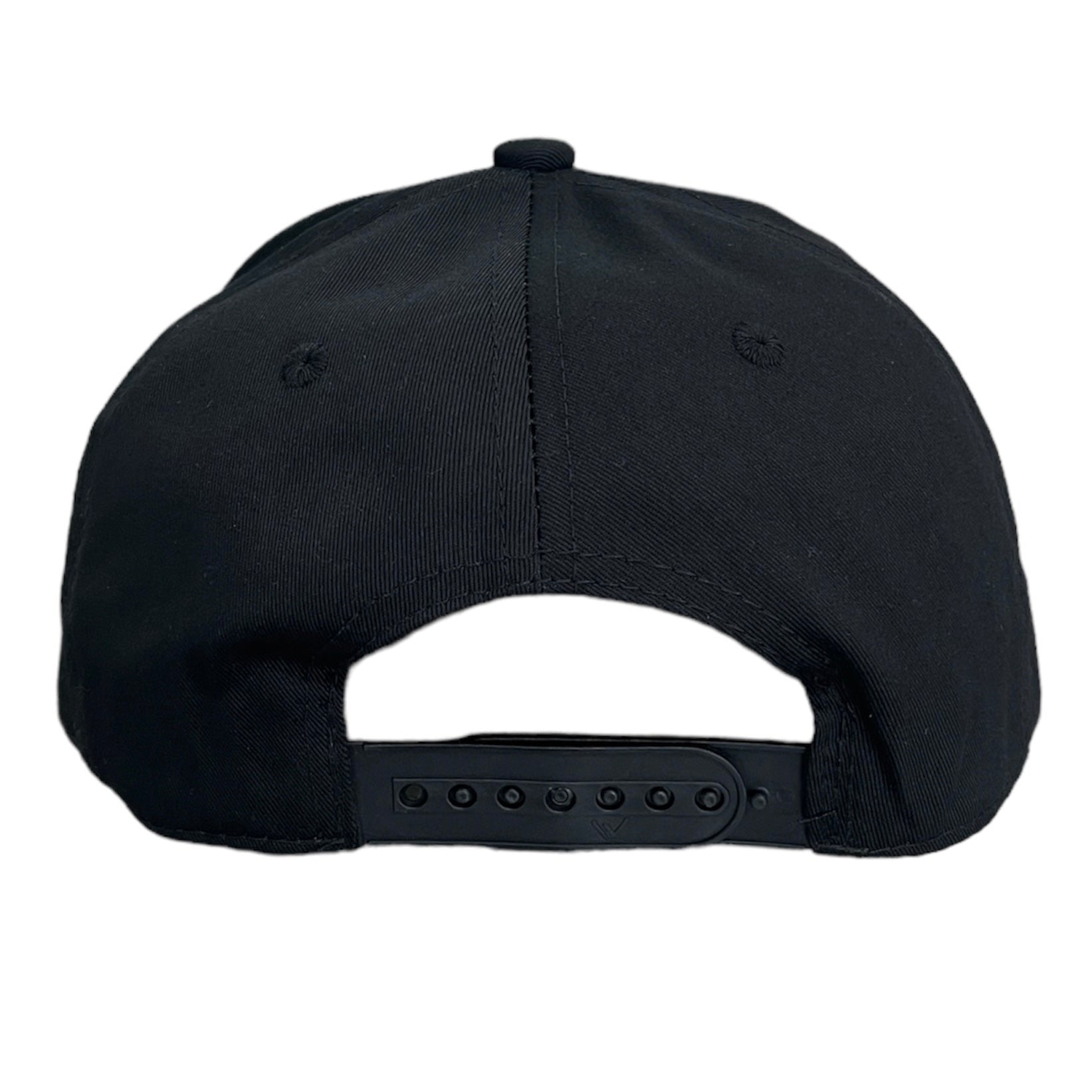 Hand Distressed Black 5 Panel Snapback Hat with Curved Brim and White SD Logo